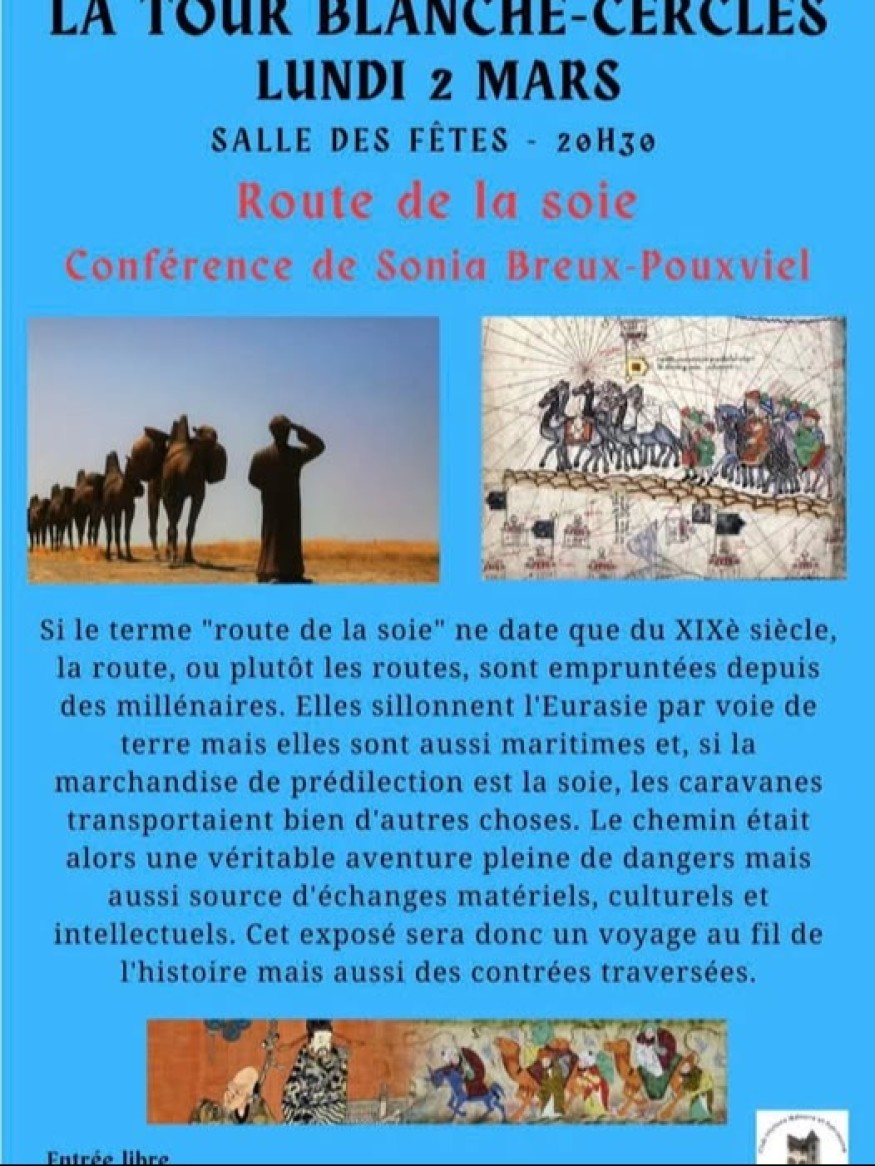 La route de la soie ,telle est le thème de la conférence de SONIA BREUX-POUXVIEL à la CERCLES LA TOUR BLANCHE