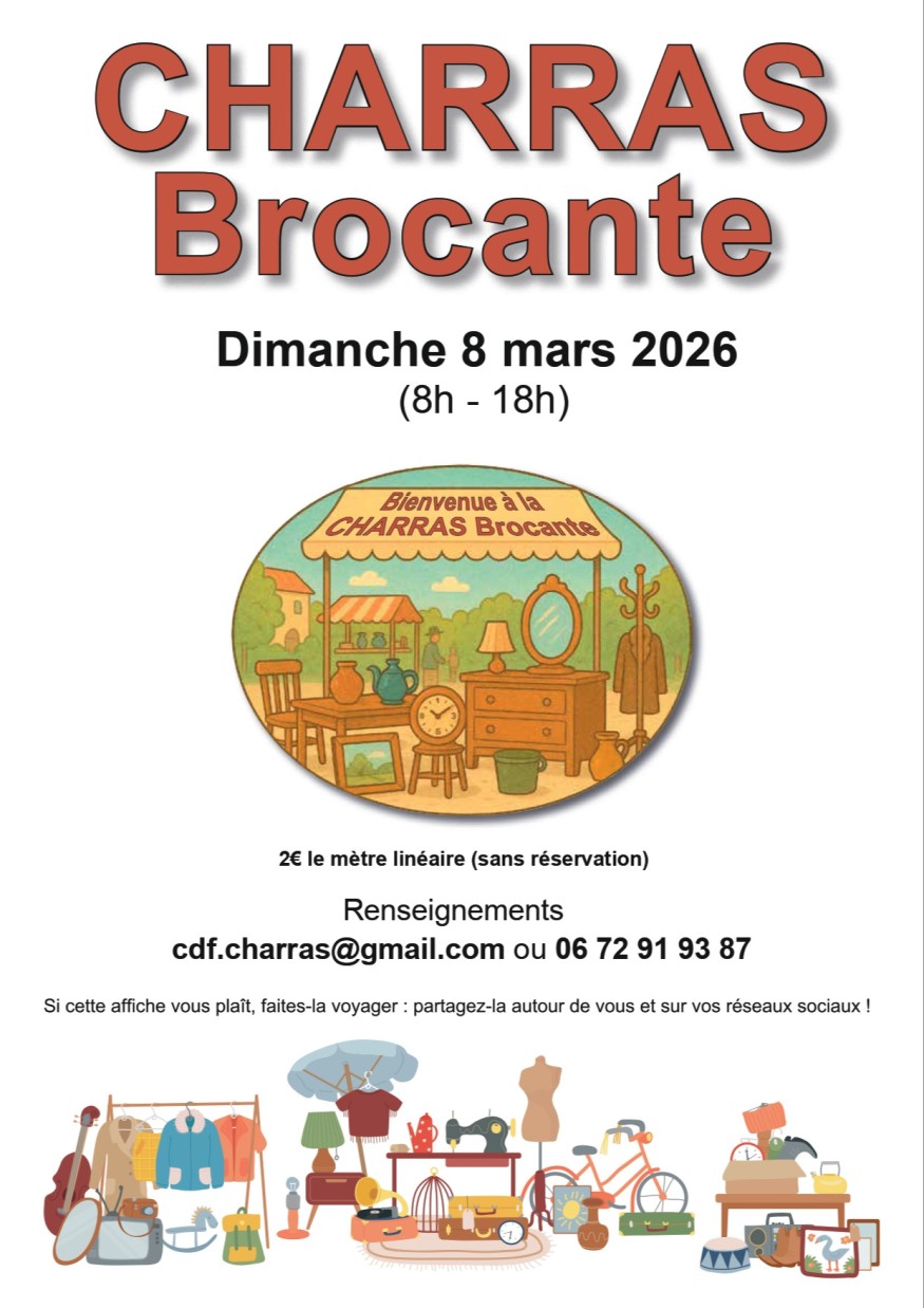 Venez chiner, vendre, flâner et partager un moment convivial lors de la Brocante de Charras !