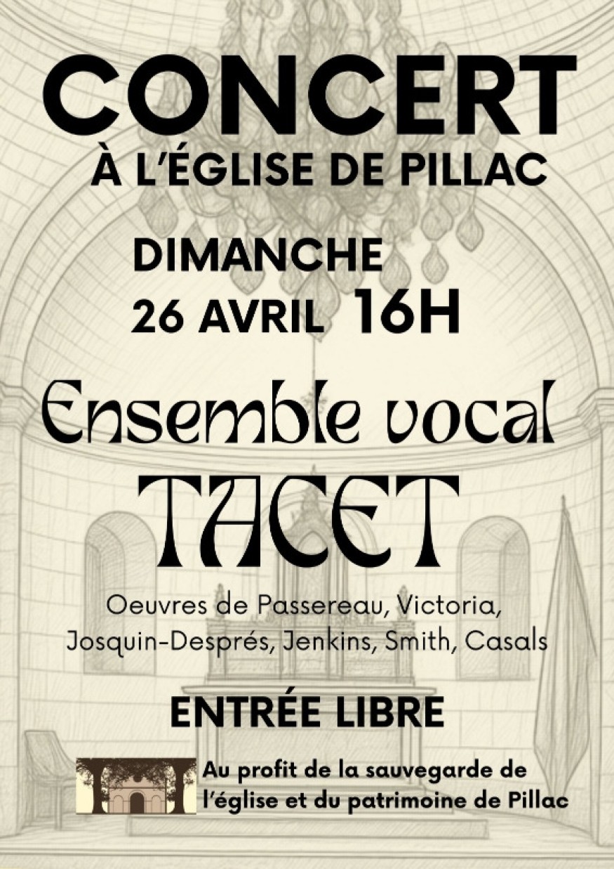 le concert est organisé au profit de la sauvegarde de l'église et du patrimoine de Pillac.