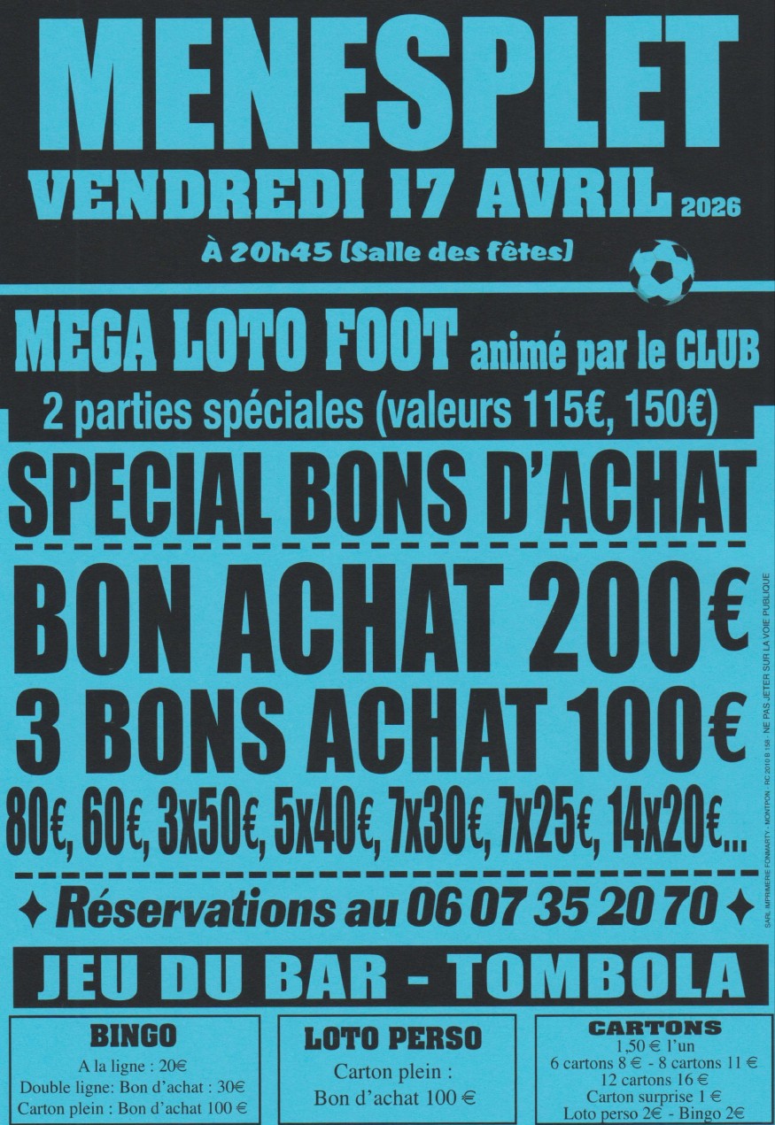 Vendredi 17 avril 2026 à partir de 20h45 , Salle des fêtes de Menesplet