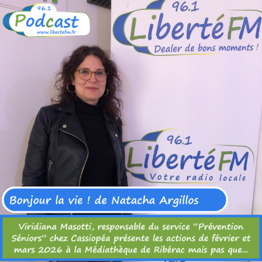 Natacha, dans "Bonjour la Vie !" reçoit Viridiana Masotti, responsable chez Cassiopea. Elle présente le programme de février et mars dans le Ribéracois - 12.02.26