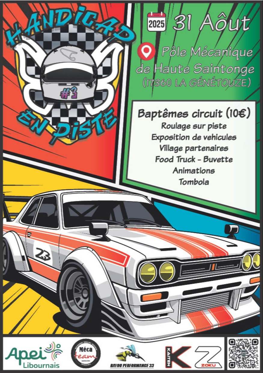 C'est SEB, pour votre émission "ÇA ROULE" l'émission de l'automobile mais pas que… Avec cette semaine au sommaire de "ÇA ROULE", "ÇA ROULE" va revenir sur un événement qui a eu lieu les 30 & 31Aout dernier sur le Circuit Jean-Pierre BELTOISE de Hautes Saintonge avec la 3ème éditions " HANDICAP EN PISTE " pour cela Hugues BENEDETTI président de l'APEI du Libournais, président de " MECA TEAM " et fondateur " HANDICAP EN PISTE " fera le débriefe de cette 3ème éditions et nous donneras la tendance pour la suite de cette superbe initiative de ce rendez-vous magic entre le handicape et le sport automobile. Bonne écoute à tous.