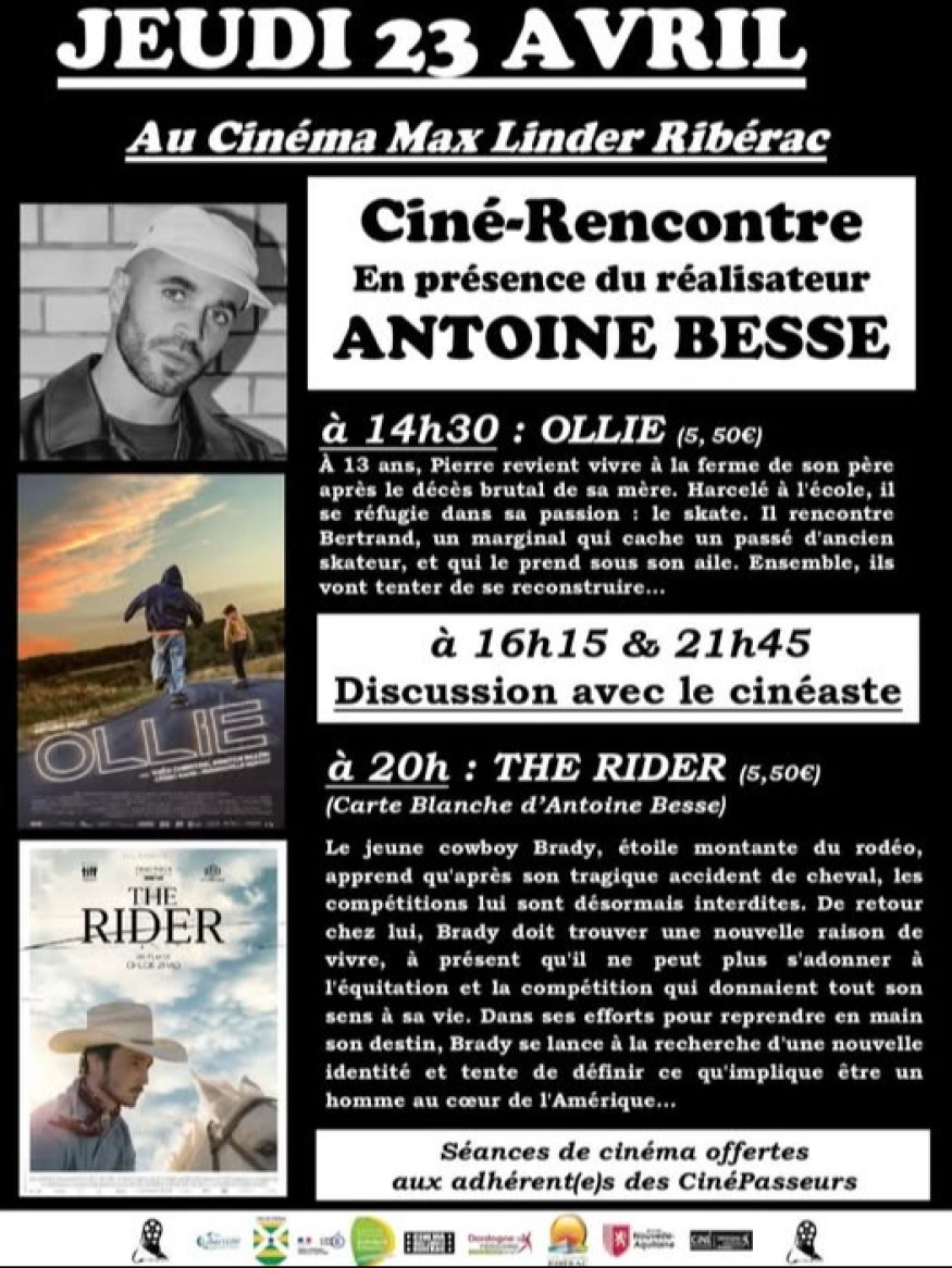 Journée évenementielle à Ribérac ce jeudi 23 avril avec la présence du réalisateur ANTOINE BESSE au cinéma Max Linder