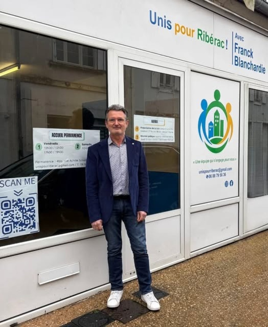 FRANCK BLANCHARDIE tête de liste UNIS POUR RIBERAC évoque sa permanence rue ACHILLE SIMON et les rencotre a venir