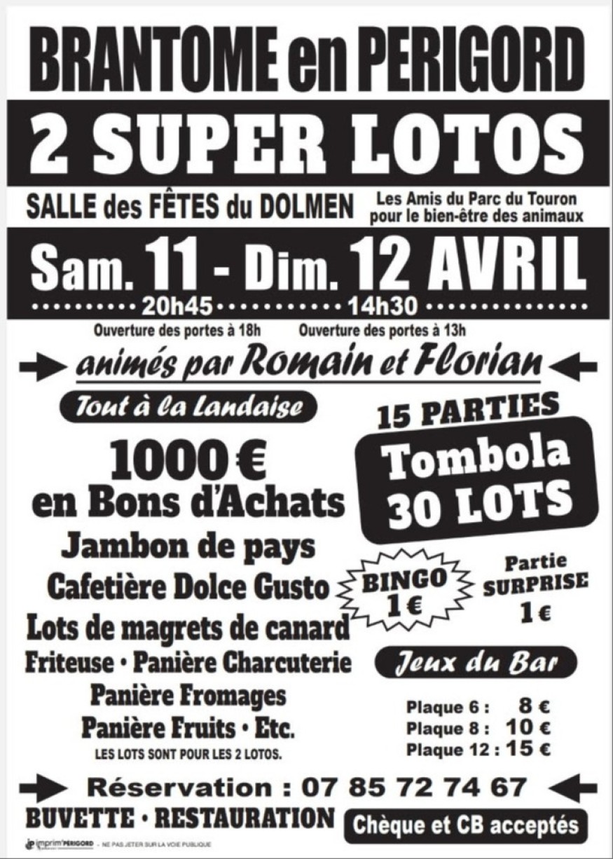 2 SUPER LOTOS À BRANTÔME EN PÉRIGORD