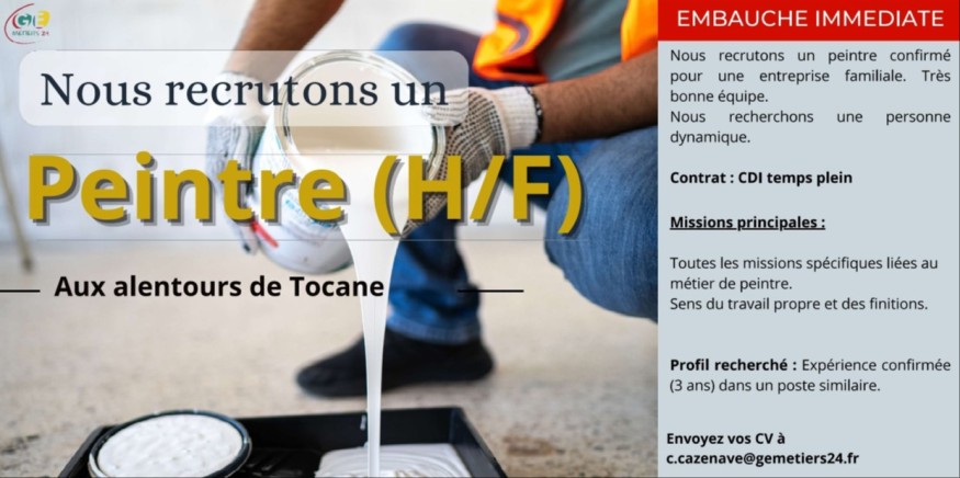 OFFRE D'EMPLOI : cherche peintre (H/F) aux alentours de Tocane