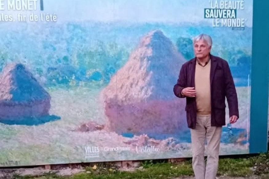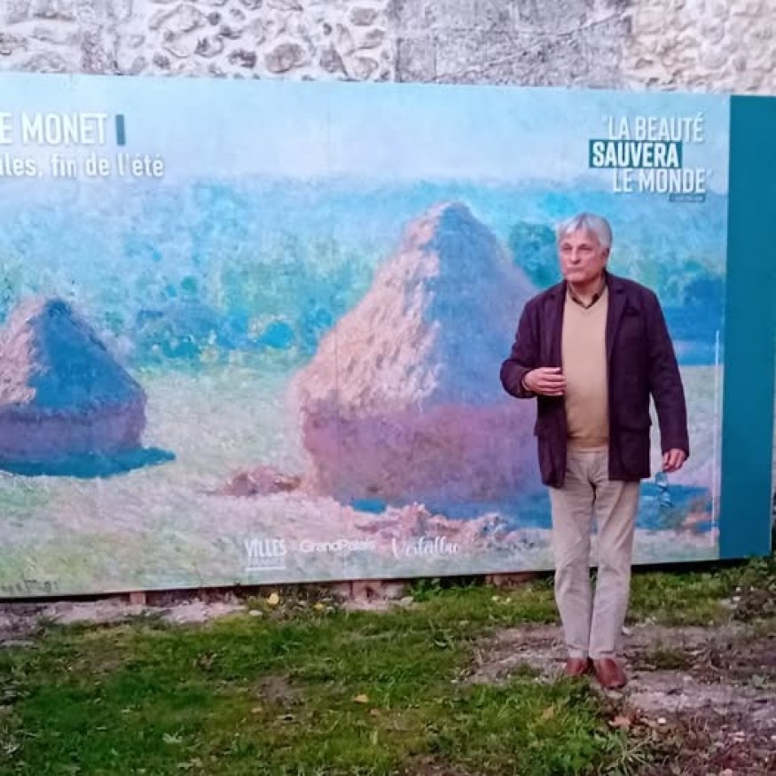 REGIS DEFRAY maire de VERTEILLAC évoque l'opération LA BEAUTE SAUVERA LE MONDE avec la présence de l'oeuvre LES MEULES de CLAUDE MONNET