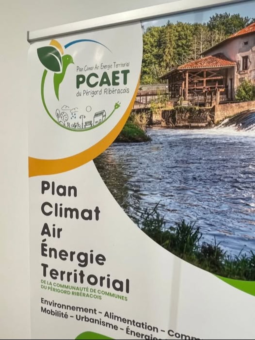AUDREY LAGAUDE chargée de mission PLAN CLIMAT AIR ENERGIE TERRITORIAL évoque l'exposition de la CCPR visible à la mairie de VILLETOUREIX