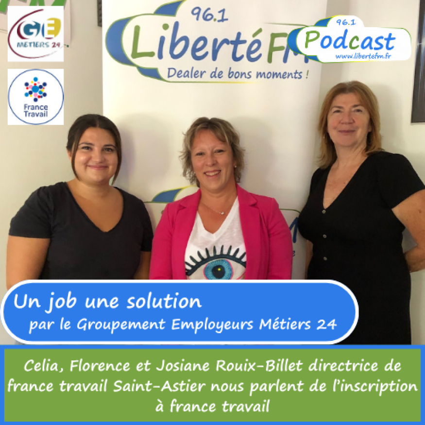 Un job une solution par le Groupement Employeurs Métiers 24, Celia, Florence et Josiane Rouix-Billet directrice de france travail Saint-Astier nous parle de l’inscription à france travail 02.10.25